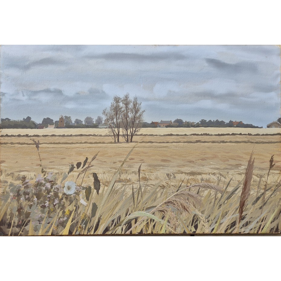 Artist: Anthony DayTitle: 'The Barley Fields'Description: An original East Anglian painting in gouache on paper. The work is signed and dated 1976 lower right, and signed, titled and dated on the artist's label verso. It is in good condition and its original frame is serviceable. Please note, t...