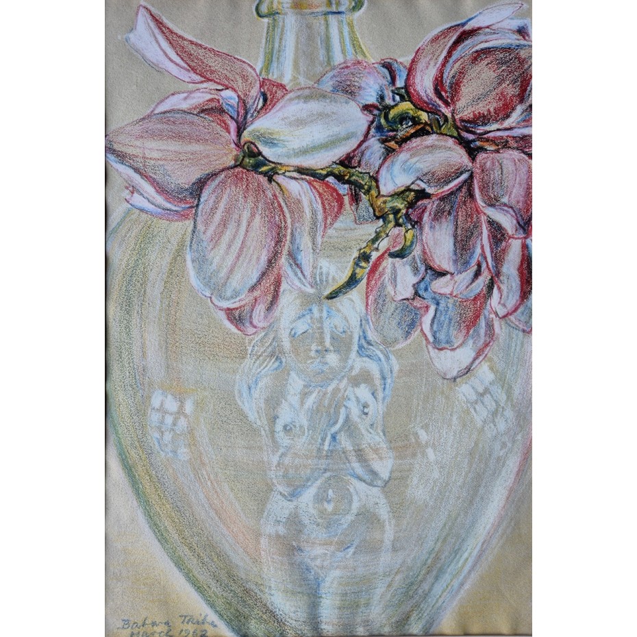 Artist: Barbara TribeTitle: 'Flowers in a Vase'Description: An original drawing in pastel. The work is signed lower left and dated there March 1962. It is in good original condition, the mount has some toning in places so would ideally be replaced. Housed in its original frame which is in good ...
