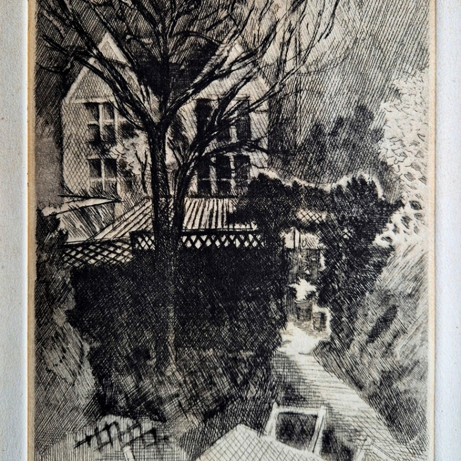 Artist: Gabriel WhiteTitle: 'The Garden at Night' believed to be the view from the back of the artist's home at 88, Holmdene Avenue, London SE24Description: An original etching titled l...