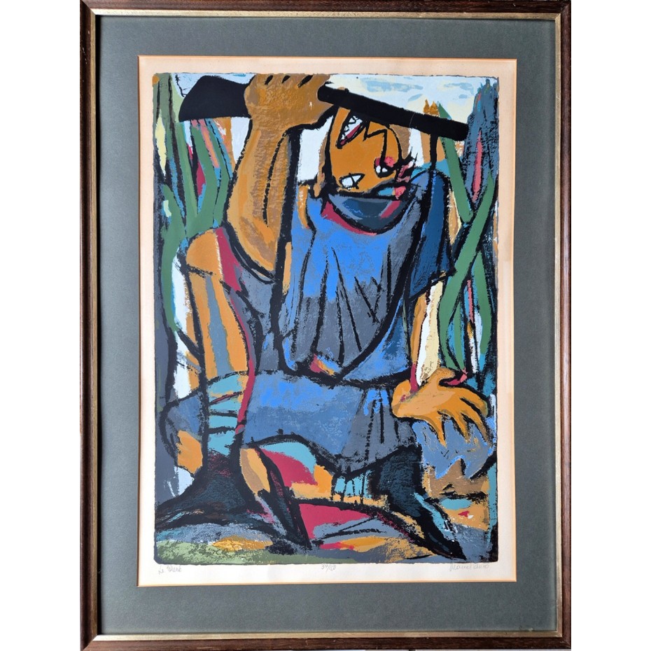 Description: An original lithograph pencil signed by the artist lower right, titled in pencil lower left, and numbered from an edition of 150 prints. The lithograph was created by the artist in 1949 but this original work appears to be a later edition, probably published in the 1960s. It is in good condition for its age, with strong colour. The frame is later than the 1960s, made possibly 20 or 30 years ago; the frame is adequate but not of premium quality.