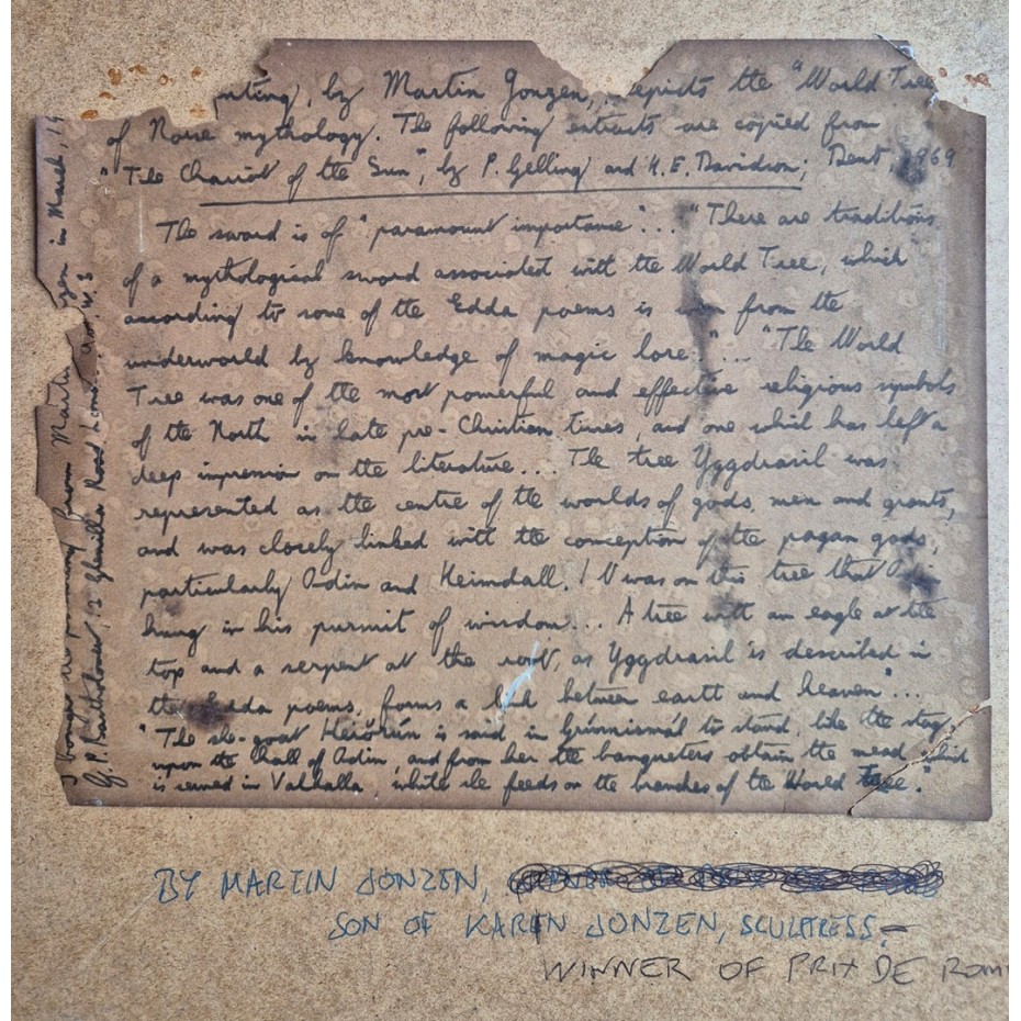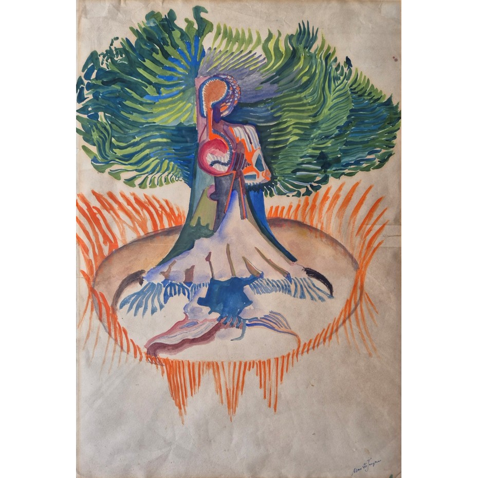 Description: An original work in mixed media (watercolour and gouache). The painting is signed lower left, with a hand written letter verso which appears to be by artist's hand. The frame has some wear but is serviceable, the painting has some creasing and time staining but is presentable.