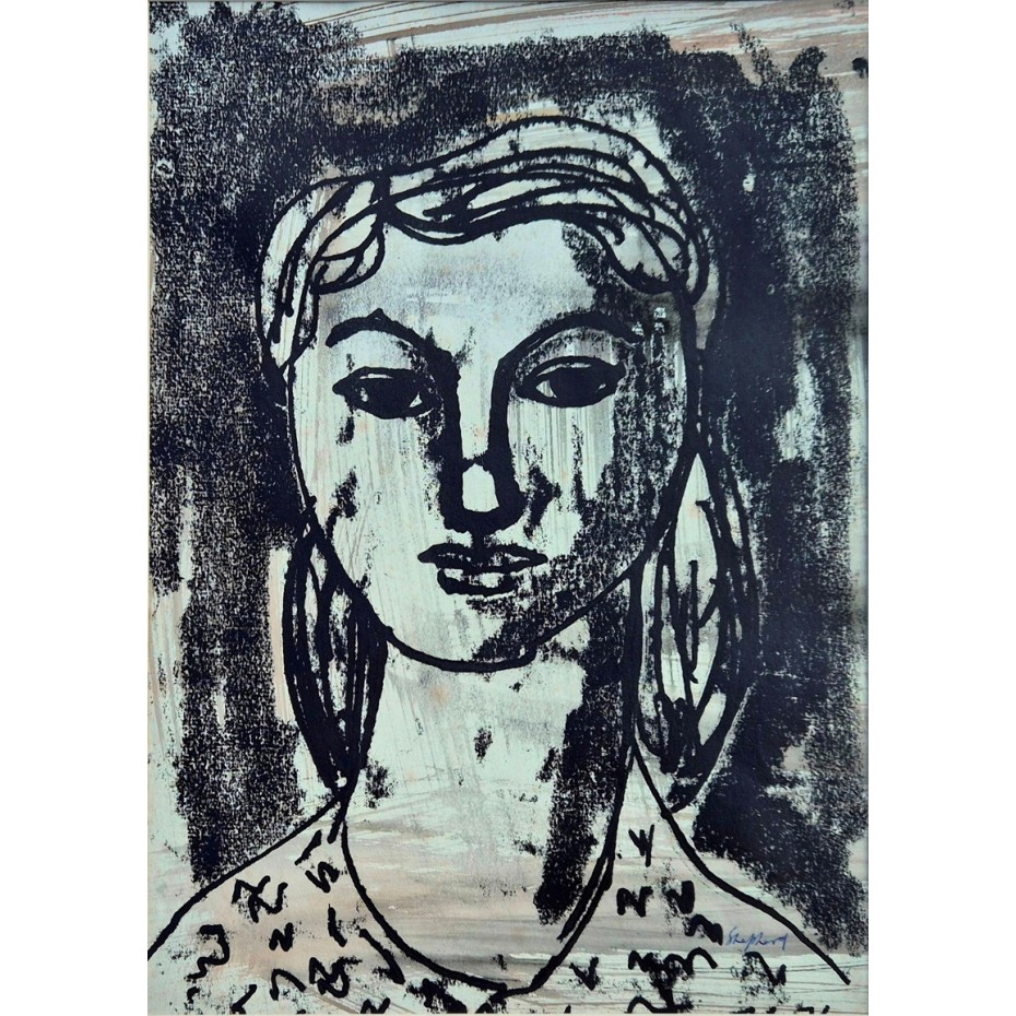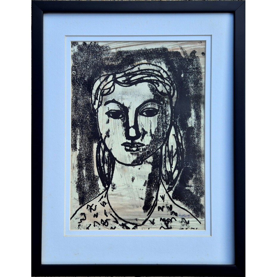 Description: An original painting in mixed media on paper. The work is in good original condition. It is signed lower right, provenance being the artist's widow. We have had a new mount made for the work thus it is now ready to hang.